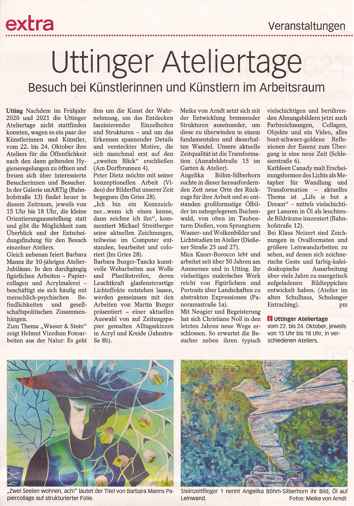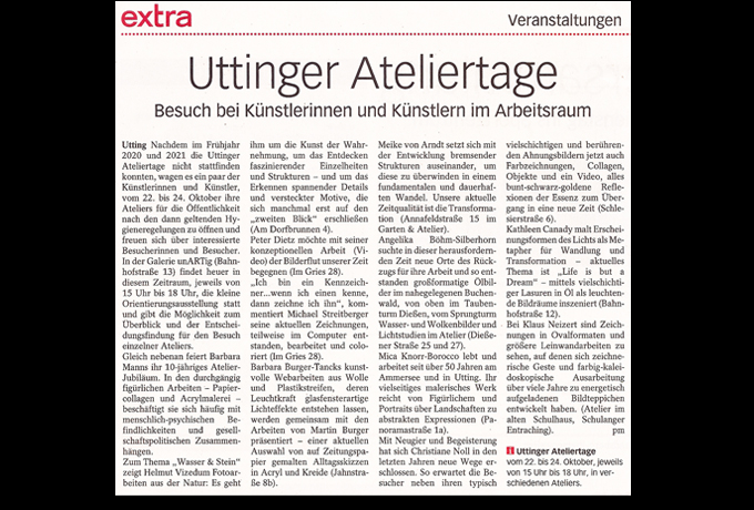 Ankündigung der Ateliertage im Extra – am 20.10.2021
