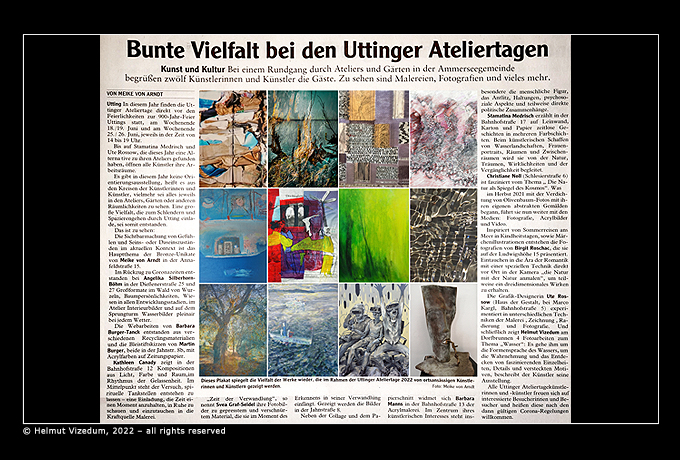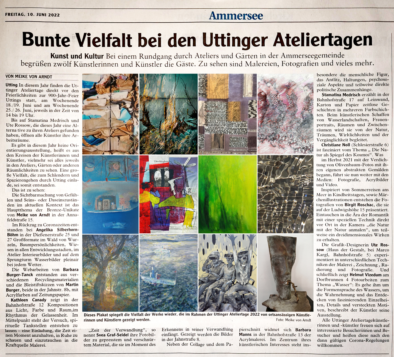 Presseankündigung für die Uttinger Ateliertage im Ammersee Kurier, 10.06.2022