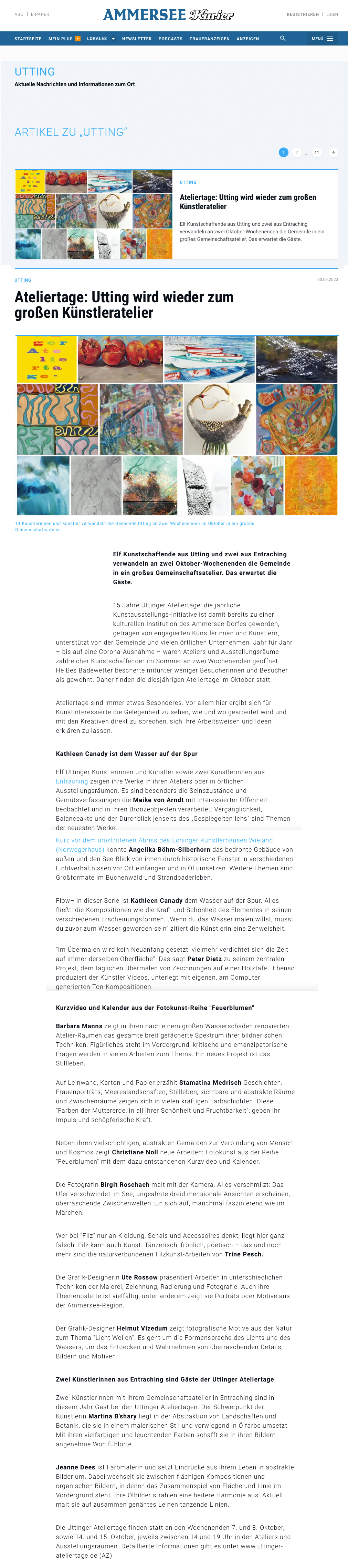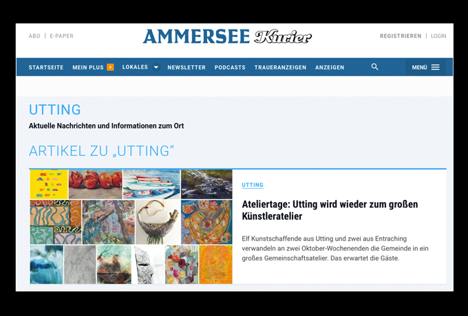 Ankündigung im Ammersee Kurier (Web): Utting wird wieder zum großen Künstleratelier