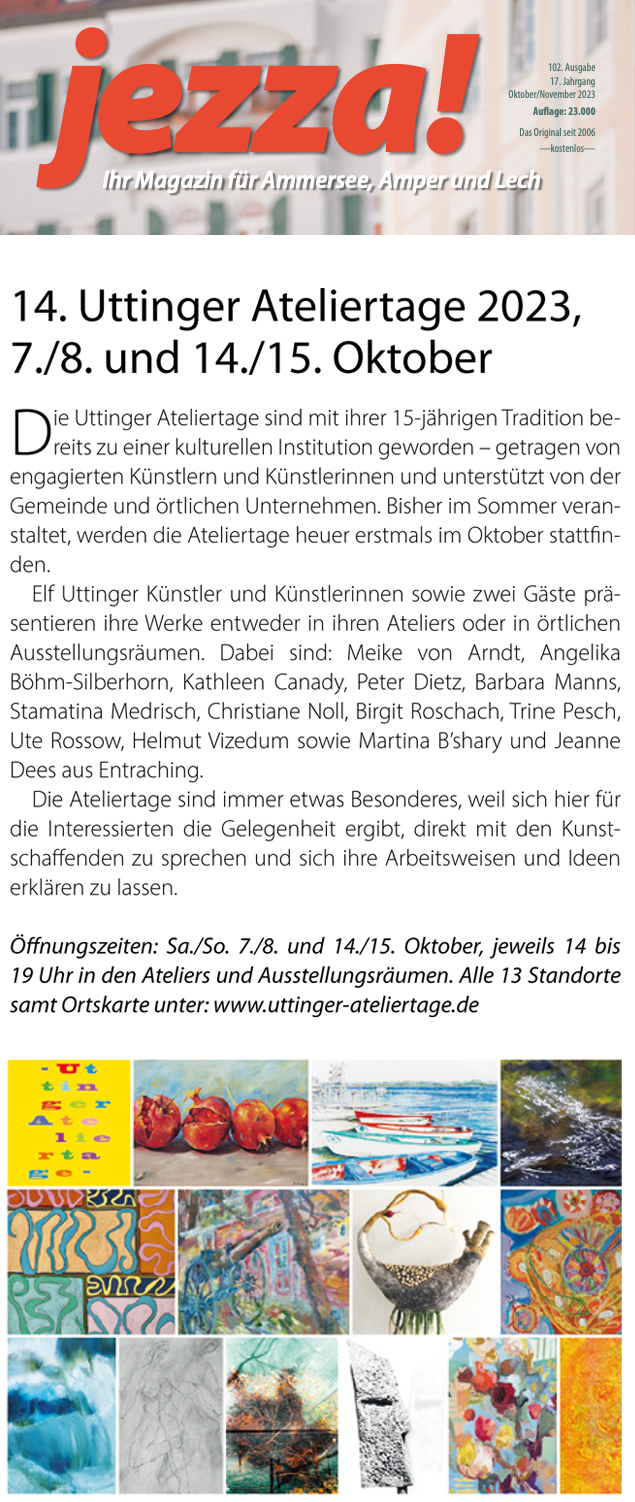 : Uttinger Ateliertage am 7. / 8. und 14. / 15. Oktober 2023 – jeweils von 14 bis 19 Uhr