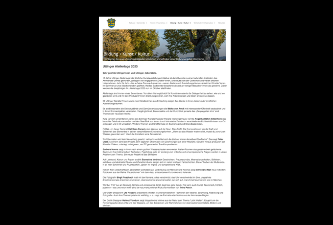 Website von Utting zu den Ateliertagen 2023